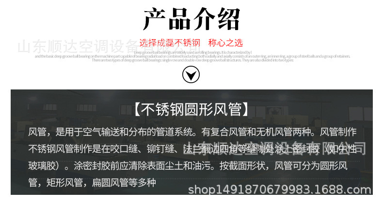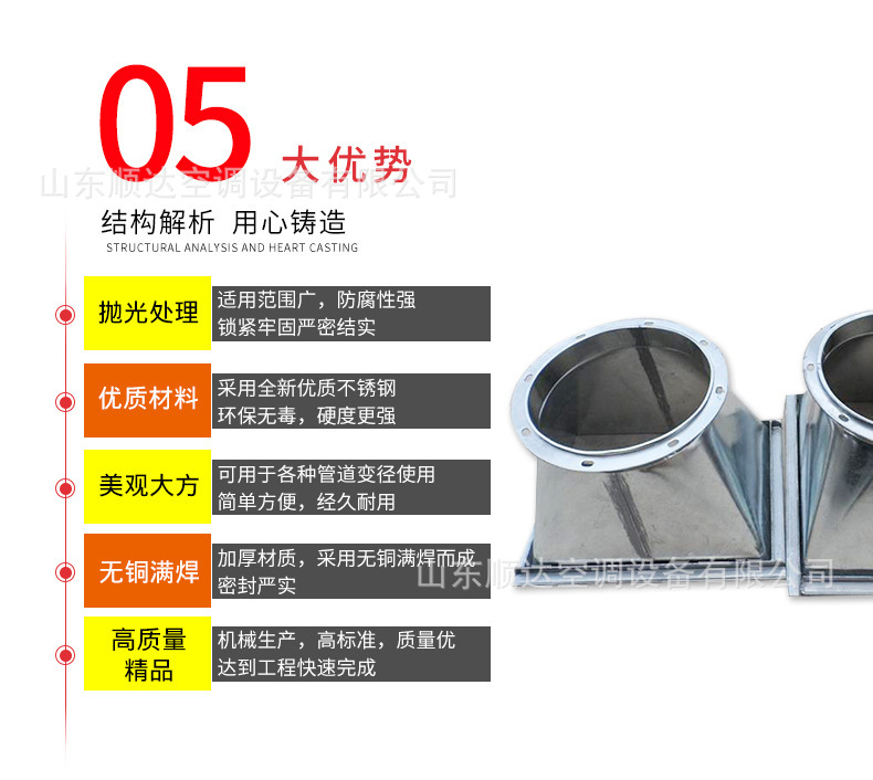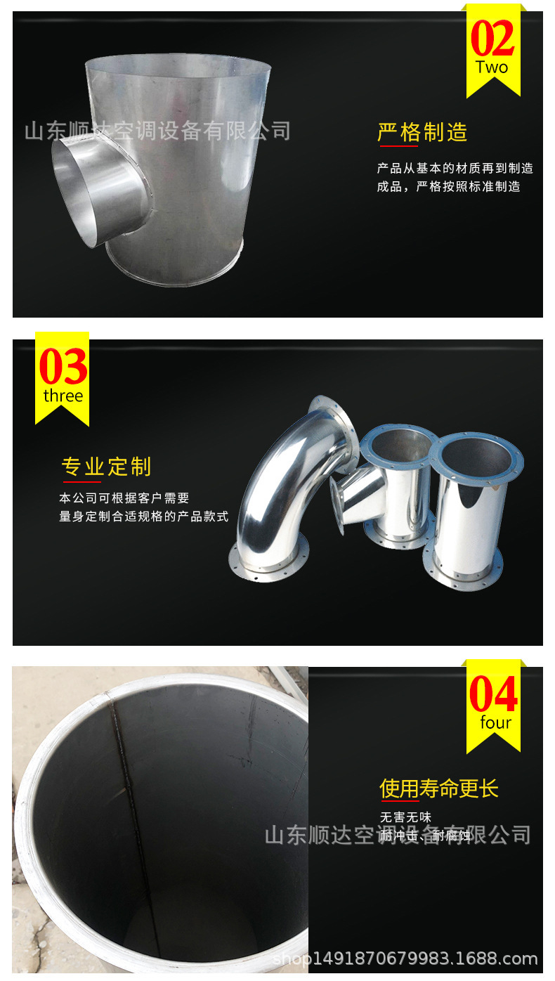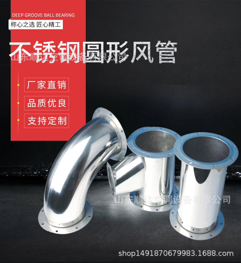 不銹鋼風(fēng)管,不銹鋼風(fēng)管可分為圓形和矩形兩種。可根據(jù)工程現(xiàn)場的不同要求,生產(chǎn)各種形狀、各種規(guī)格型號及板材的成品風(fēng)管。不銹鋼風(fēng)管主要材質(zhì)有:SUS304、316、303、310、310S、301、302、304L、316L 、321、201、202、902、904、317、430等。不銹鋼風(fēng)管表面性質(zhì)主要有8K鏡面板、彩色不銹鋼板、不銹鋼磨砂板、不銹鋼拉絲板、不銹鋼花紋板、不銹鋼蝕刻板、鈦金、雪花砂、2B板、BA板和工業(yè) [1] 中厚板。不銹鋼風(fēng)管成品因其優(yōu)異的耐蝕性、耐熱性、高強度等物化性能,主要應(yīng)用于多種氣密性要求較高的工藝排氣系統(tǒng)、溶劑排氣系統(tǒng)、有機排氣系統(tǒng)、廢氣排氣系統(tǒng)及普通排氣系統(tǒng)室外部分、濕熱排氣系統(tǒng)、排煙除塵系統(tǒng)等。