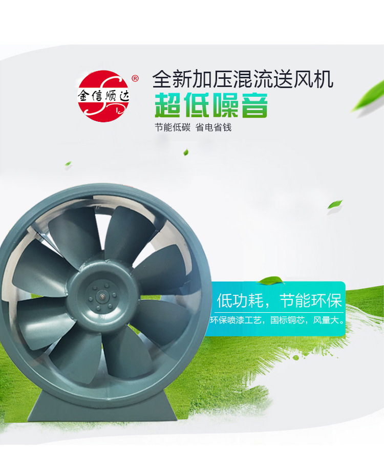 混流式風(fēng)機(jī)結(jié)合了軸流式和離心式風(fēng)機(jī)的特征,外形看起來(lái)更像傳統(tǒng)的軸流式風(fēng)機(jī)。機(jī)殼可具有敞開的入口,但更常見的情況是,它具有直角彎曲形狀,使電機(jī)可以放在管道外部。排泄殼緩慢膨脹,以放慢空氣或氣體流的速度,并將動(dòng)能轉(zhuǎn)換為有用的靜態(tài)壓力。
